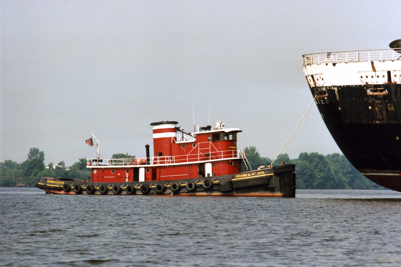 179k | Ex-Oratamin (YTM-347) in commercial service as the McAllister Towing tug Suzanne McAllister, helping move the liner United States in the Delaware River, 24 July 1996. Photo copyright John Curdy |