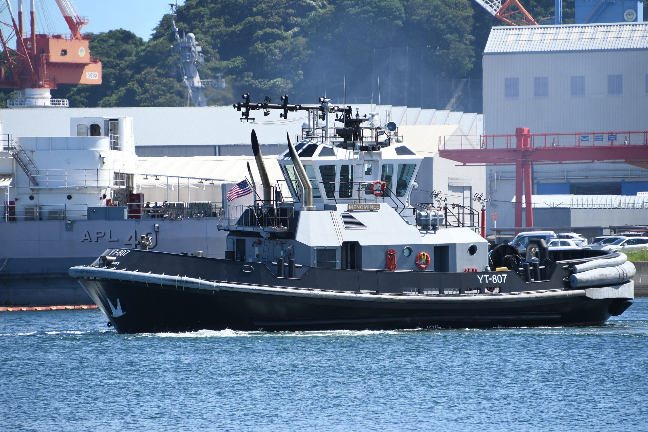 629k | Menominee (YT 807) underway at Fleet Activities Yokosuka, 26 July 2019. Photo by Hunini, via Wikimedia Commons, CC SA 4.0 |
