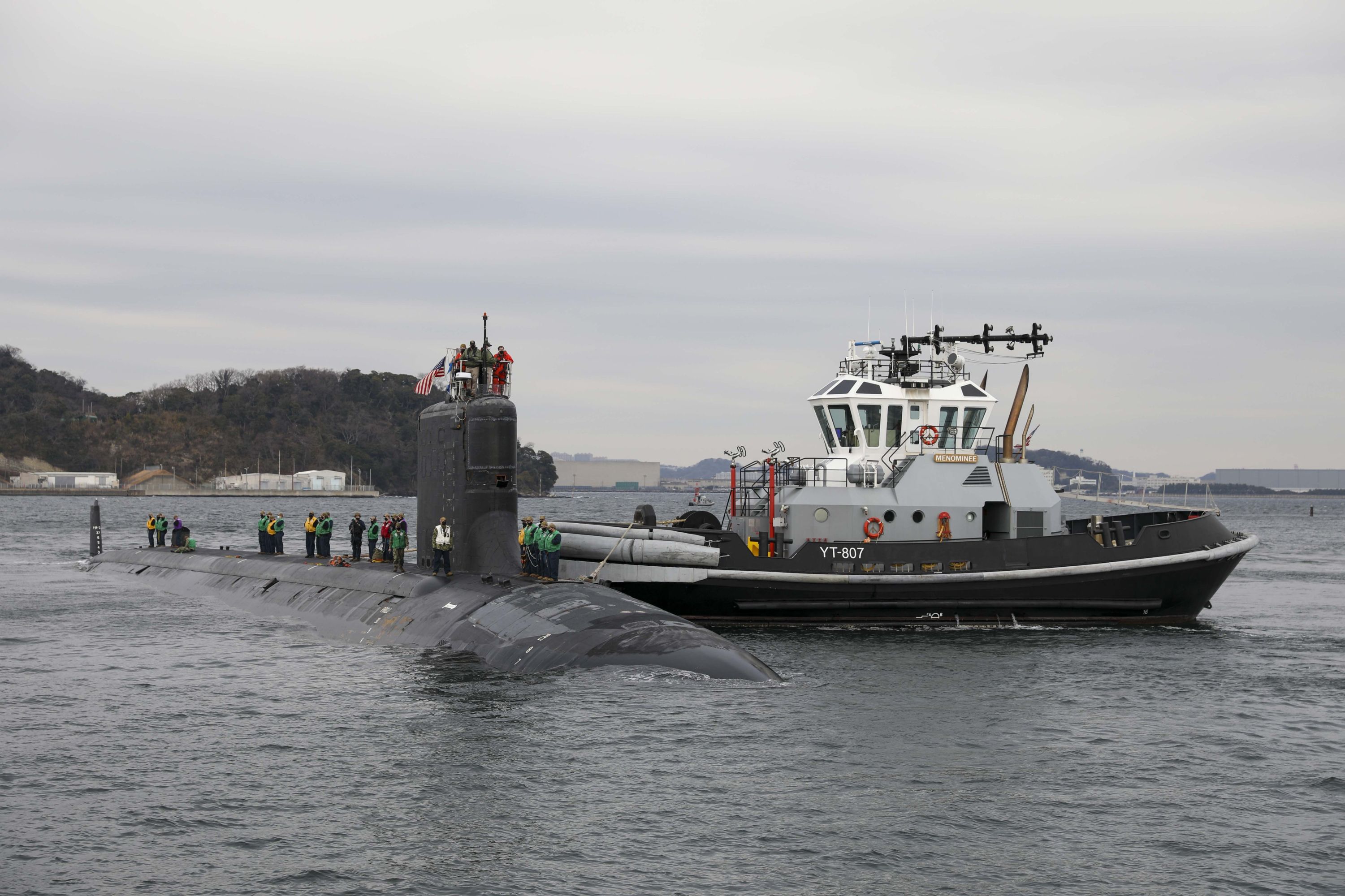 623k | Menominee (YT 807) assists the Virginia-class fast attack submarine USS Missouri (SSN 780) at Fleet Activities Yokosuka as the submarine arrives for a port visit, 10 January 2022. Official US Navy photo via Twitter |