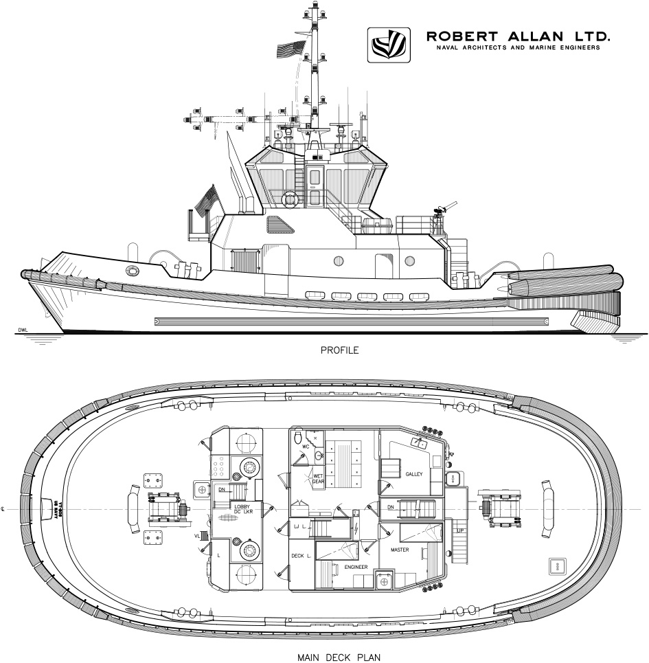 General arrangement drawing of the Z-TECH 4500 Class Harbor Tug YT 808. |
