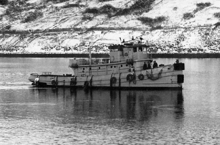 124k | Cholocco (YTB-498) underway near Naval Air Station Kodiak, Alaska, date unknown. Photo courtesy of Robert Reeves and Paul Smith US Navy Harbor Tug Boats |