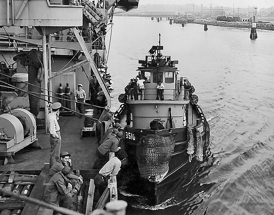 366k | Chilkat (YTB-510) assisting an unidentified ship which is departing for Antarctica as part of Operation Highjump in 1946. US Navy and Marine Corps Museum/Naval Aviation Museum, Photo No. 1986.056.001.016 |
