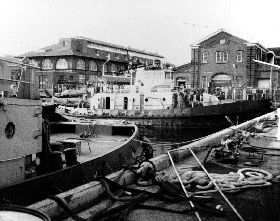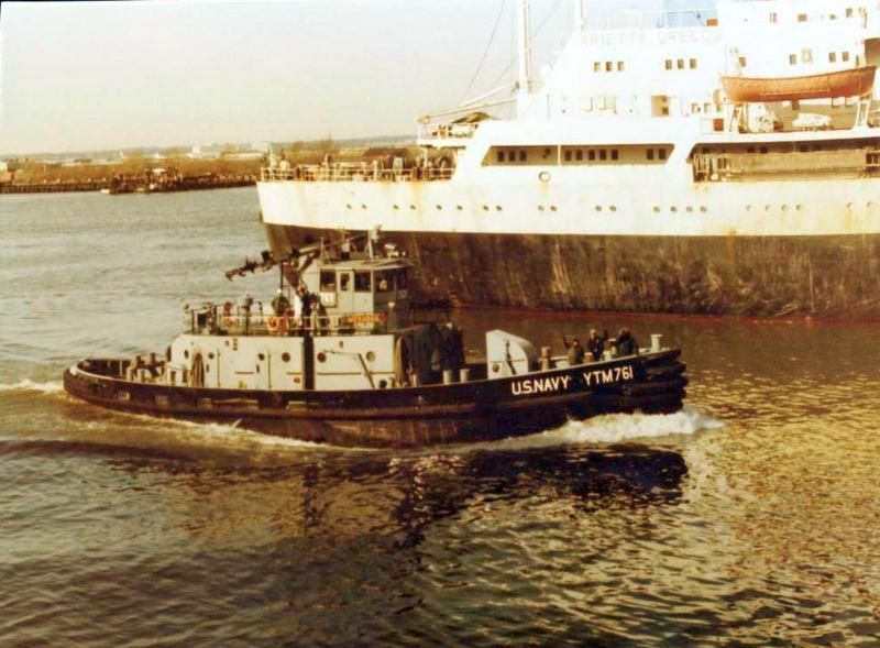Menasha (YTM-761) moored at Philadelphia Naval Shipyard, 06 October 1973. Naval History & Heritage Command photo NH 79043, courtesy C.C. Wright, 1974 |