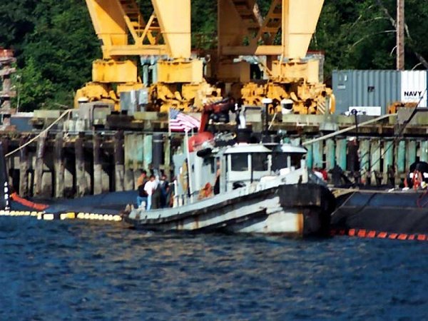 74k | YTL-432 while providing services as a diving platform for the Puget Sound Naval Shipyard divers working on USS Ashville (SSN-758) while at Sub Base, Bangor, Marginal Wharf North, circa 7 July 2003. Photo courtesy of Ray Longaker and Paul Smith US Navy Harbor Tug Boats |