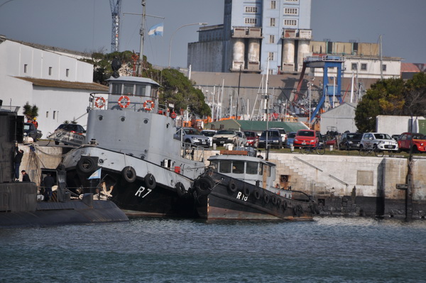 ARA Salta (S-31) can be seen forward of the two tugs. Photo courtesy of the Argentine Navy |