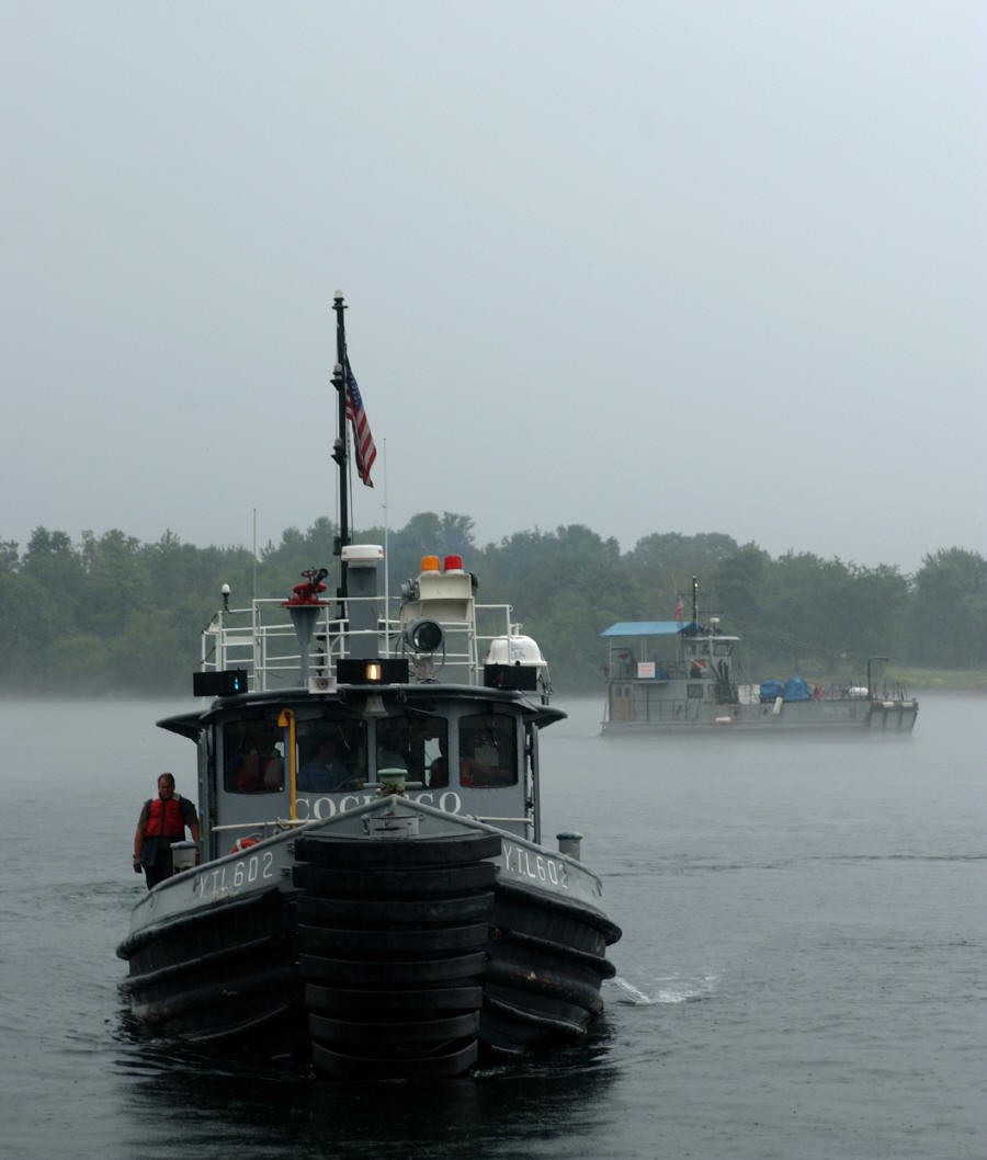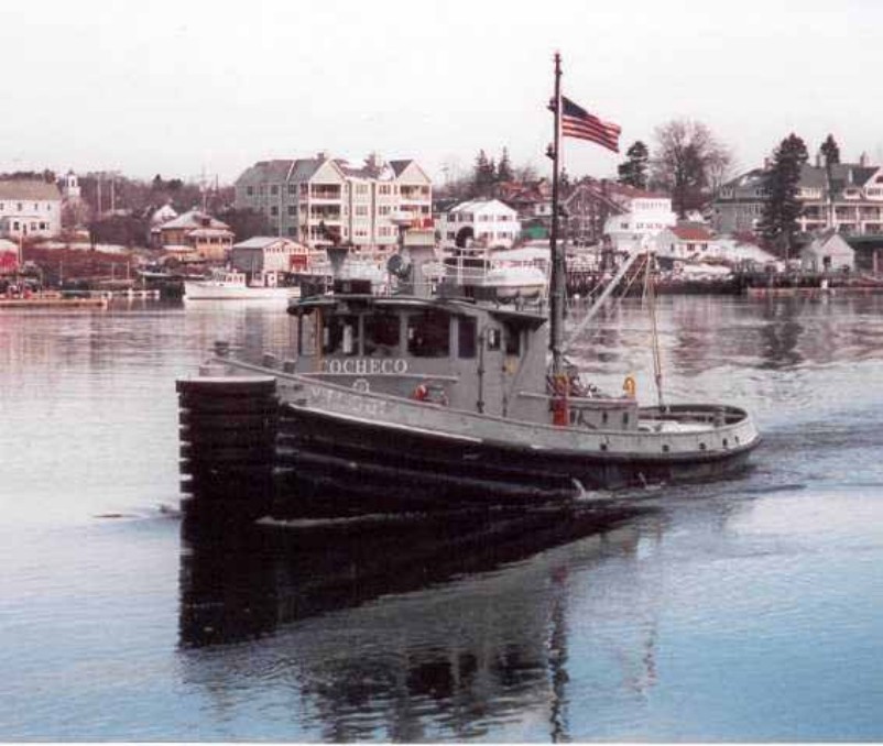 109k | YTL-602 underway on the Piscataqua River, Portsmouth, NH, date unknown. Note the boom rigged on the stern. Photo courtesy of Kurt Horst, BM1, USN. and Paul Smith |