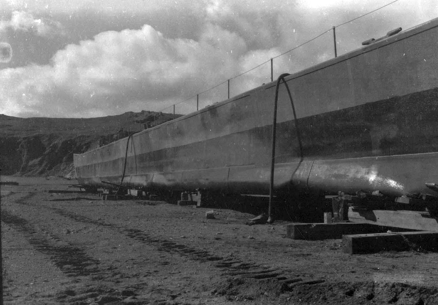 166k | On the shores at Miđsandur, on the eastern end of Hvalfjordur undergoing repairs, most likely in August of 1942.