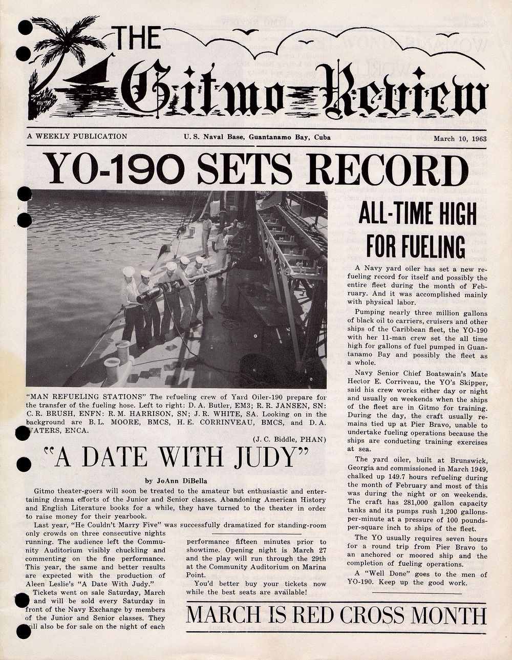 Article about YO-190 on the front page of The Gitmo Review, 10 March 1963. |