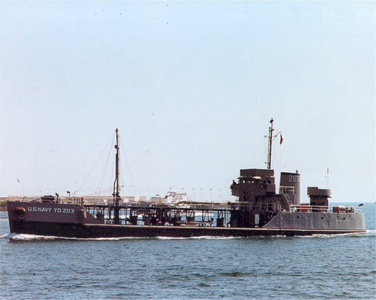 YO-203 underway, date and location unknown. US Navy photo. |