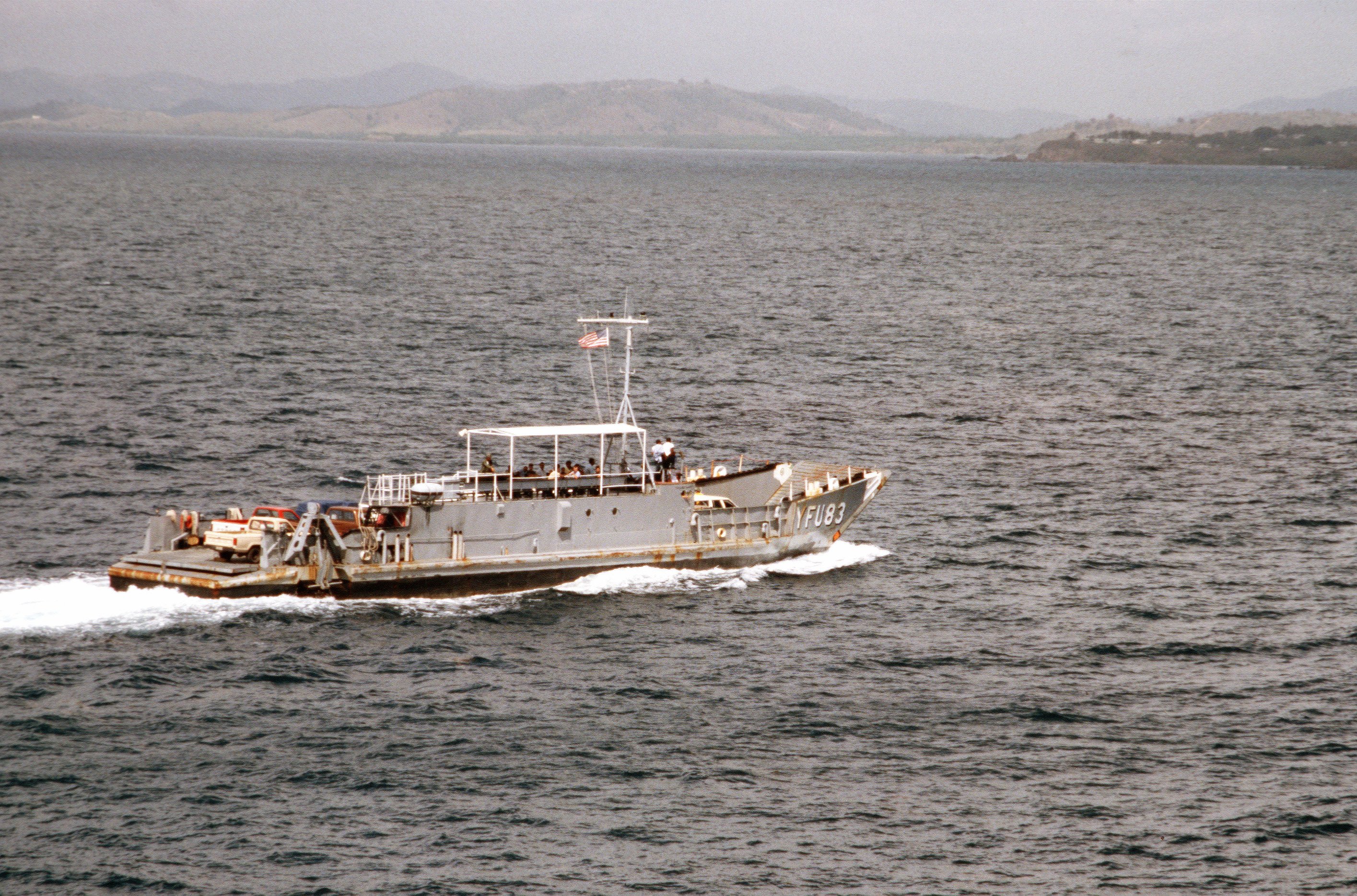 1893k | YFU-83 underway, 20 April 1984, at Naval Station Roosevelt Roads, Puerto Rico during Ocean Venture 84 DOD photo DF-ST-85-09814 by TSgt Lemuel Casillas. |
