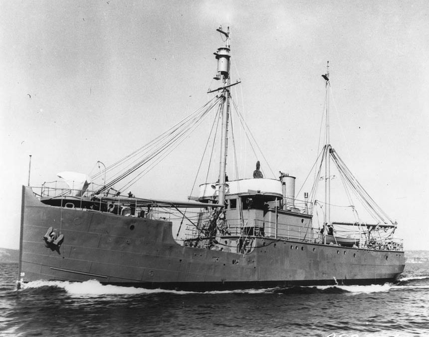 USS Baranof (YAG-11) underway during acceptance trials, circa 07 April 1942, after completing conversion at Lake Washington Shipyards, Houghton, WA.
