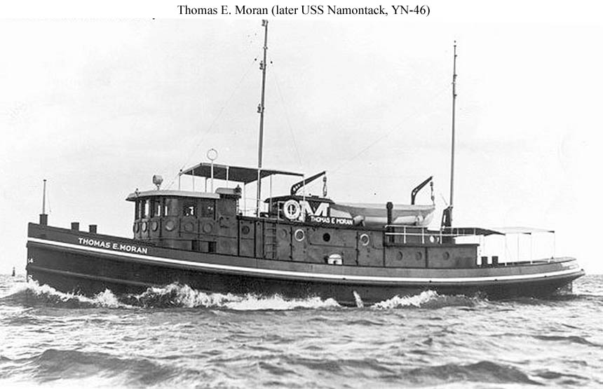 Moran Towing and Transportation Co. tug Thomas E. Moran underway, location unknown, circa 1938-40, prior to being acquired by the US Navy for WWII service. |