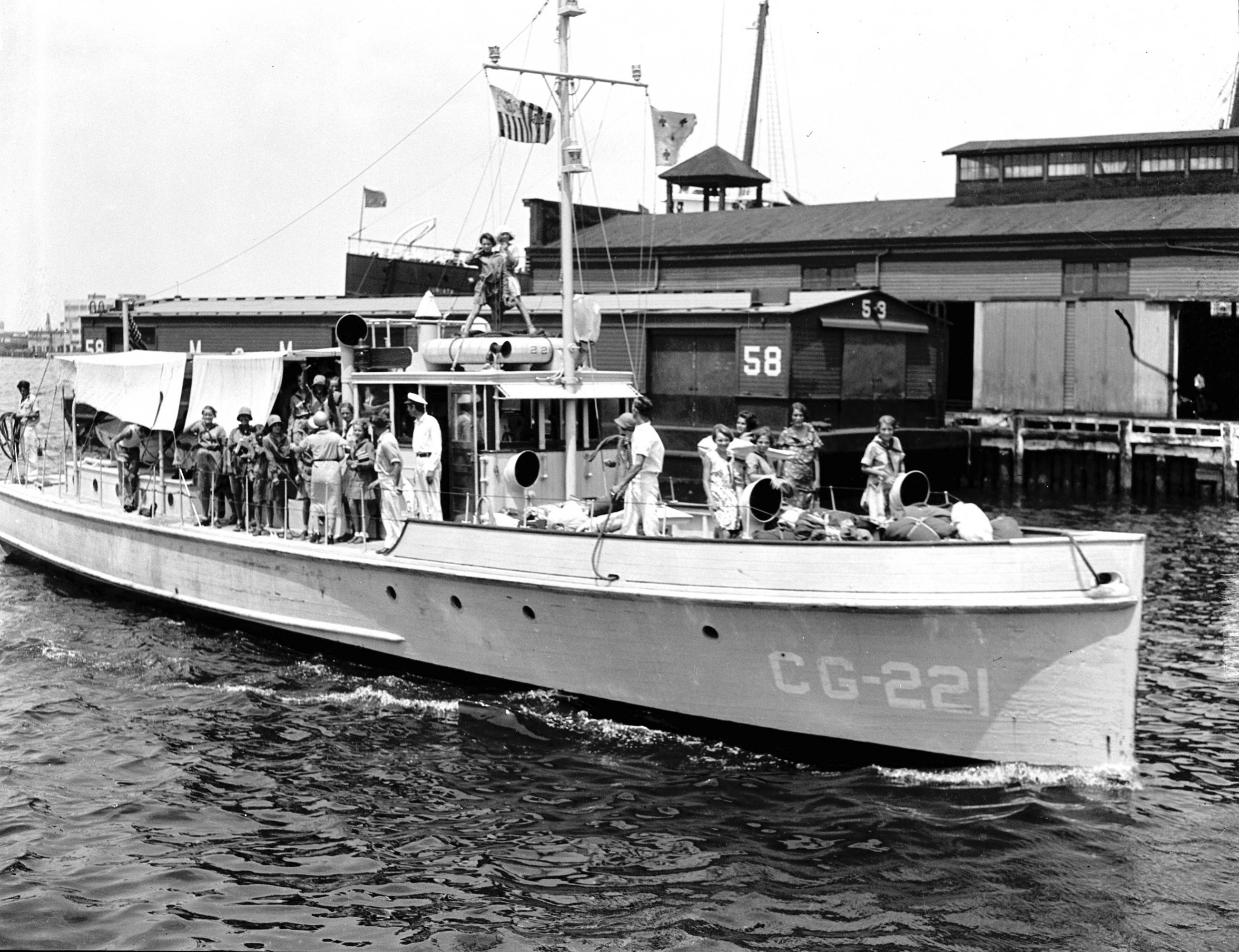 YP-22 739k CG-221 underway at Norfolk with a party of schoolgirls aboard, 10 August 1931.