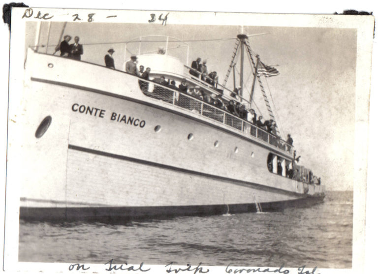 73k | Newly completed Conte Bianco on a trial run, 28 December 1934. Photo from Castagnola family, via San Diego Tuna Boats website. |