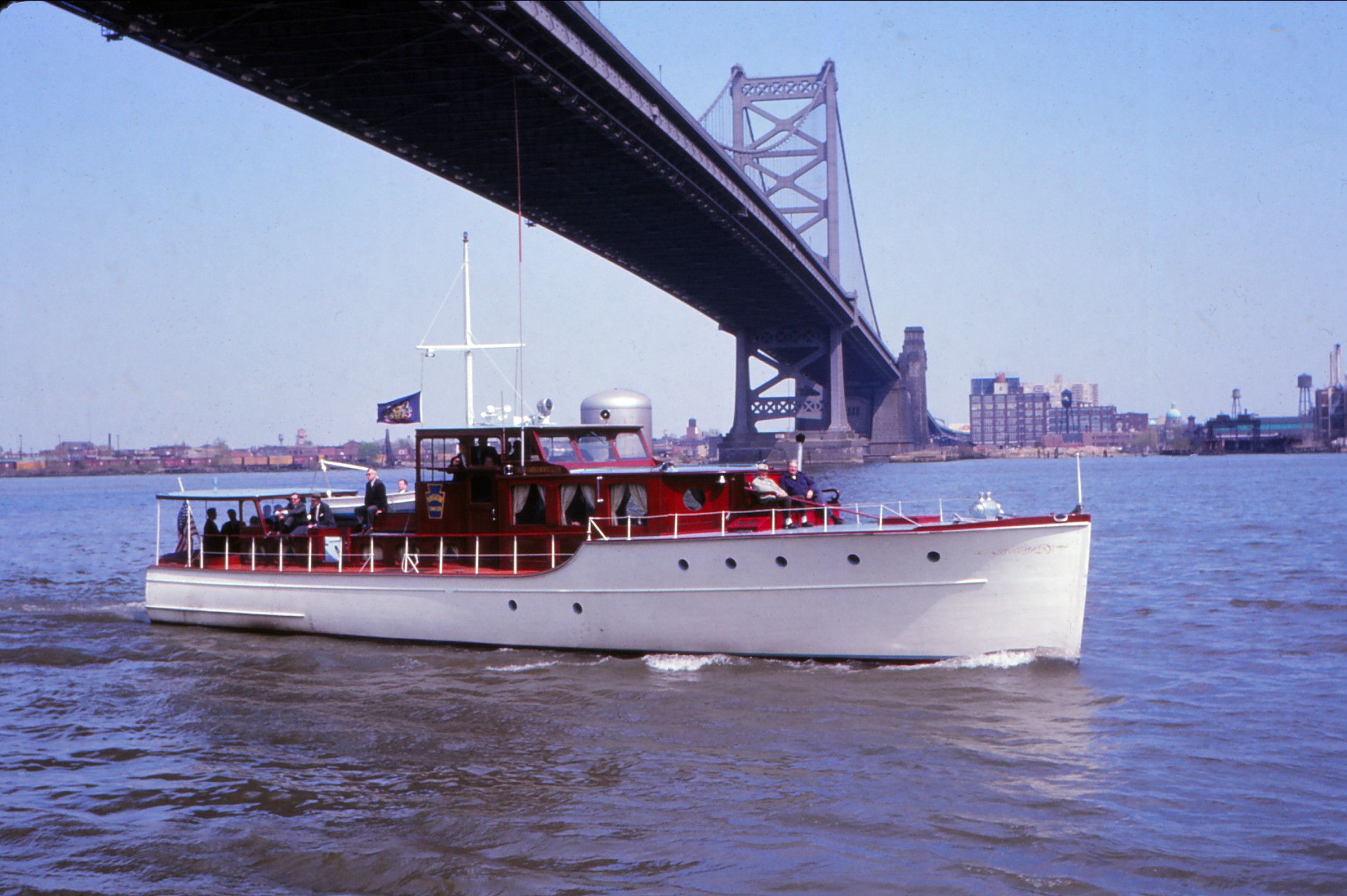 YP-335 337k The Commonwealth sailing on the Delaware River, passing under the Ben Franklin Bridge, Philadelphia, PA, 21 April 1969. Photo by Francis Palmer. Dave Boone
