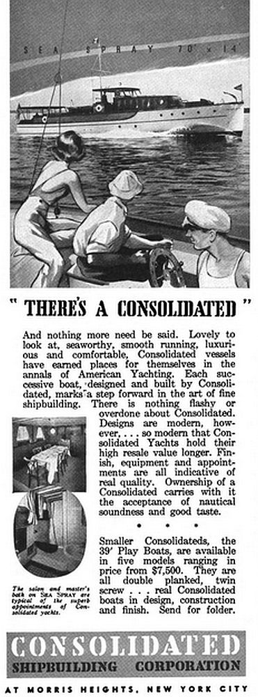 YP-335 105k Consolidated Shipbuilding ad showing Sea Spray as built, from Motor Boating magazine, November 1936. Dave Wright