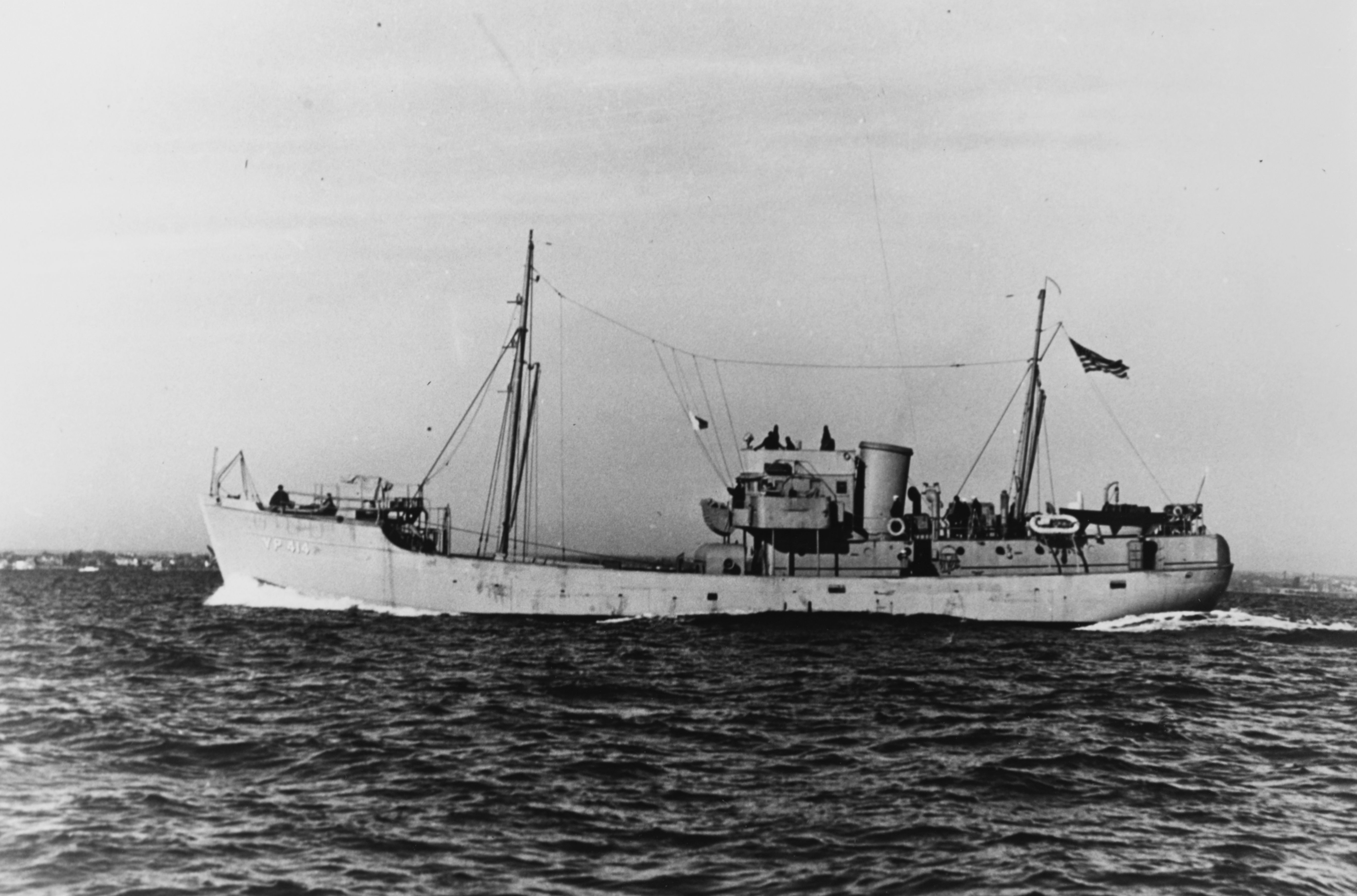 YP-414 underway in Boston Harbor, 12 August 1942. Navy Yard Boston photo # 3513-42 28 July 1942, Boston National Historical Park Collection NPS Cat. No. BOSTS-14815. |