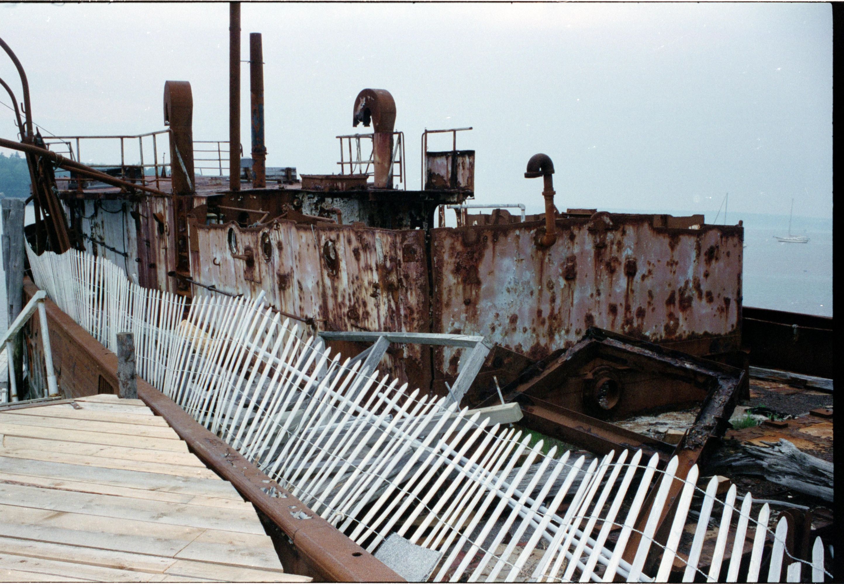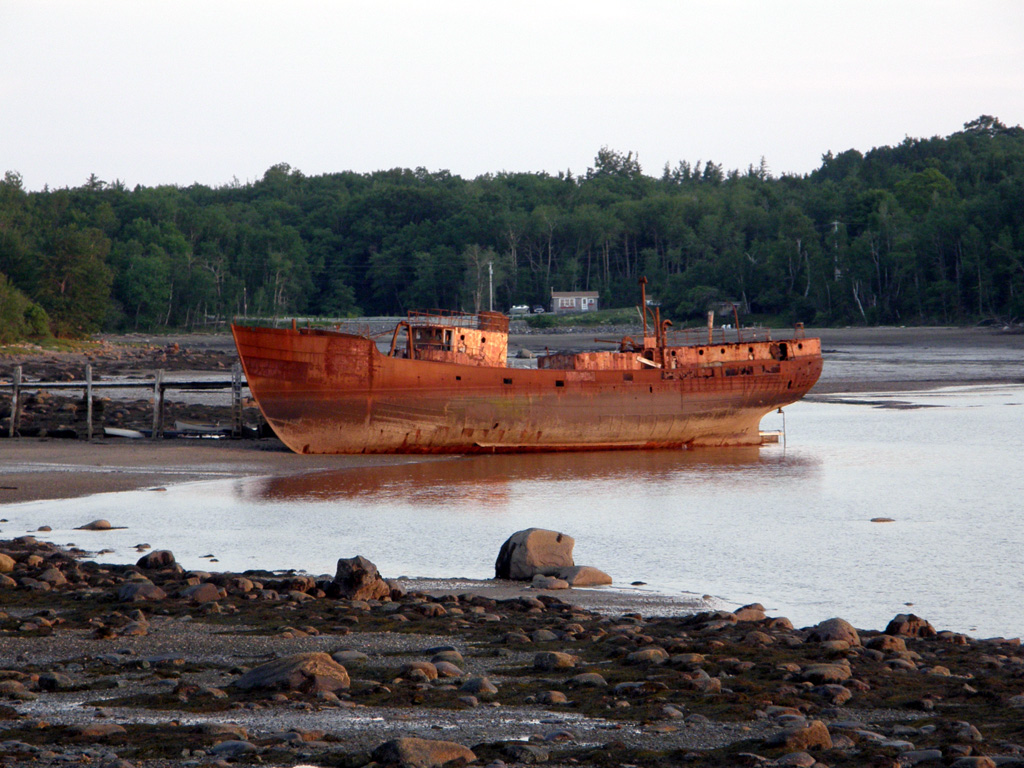 Hulk of Squall beached as breakwater at the entrance of Morse Cove in Penobscot Bay, ME, date unknown. |
