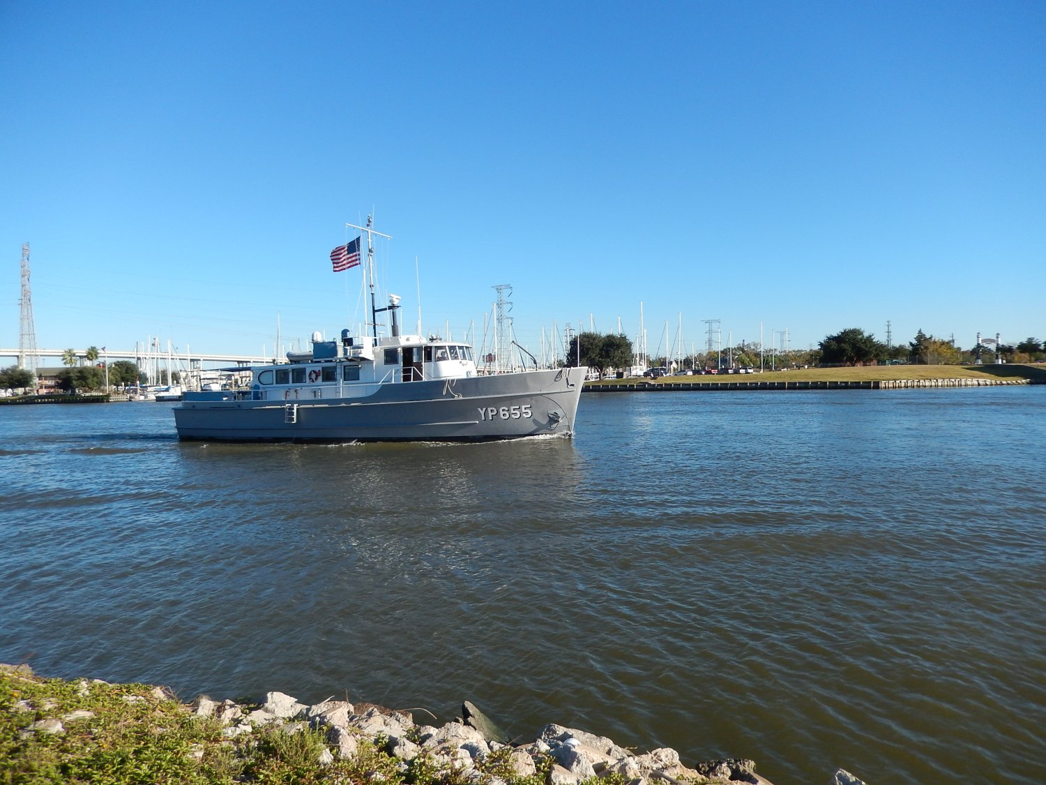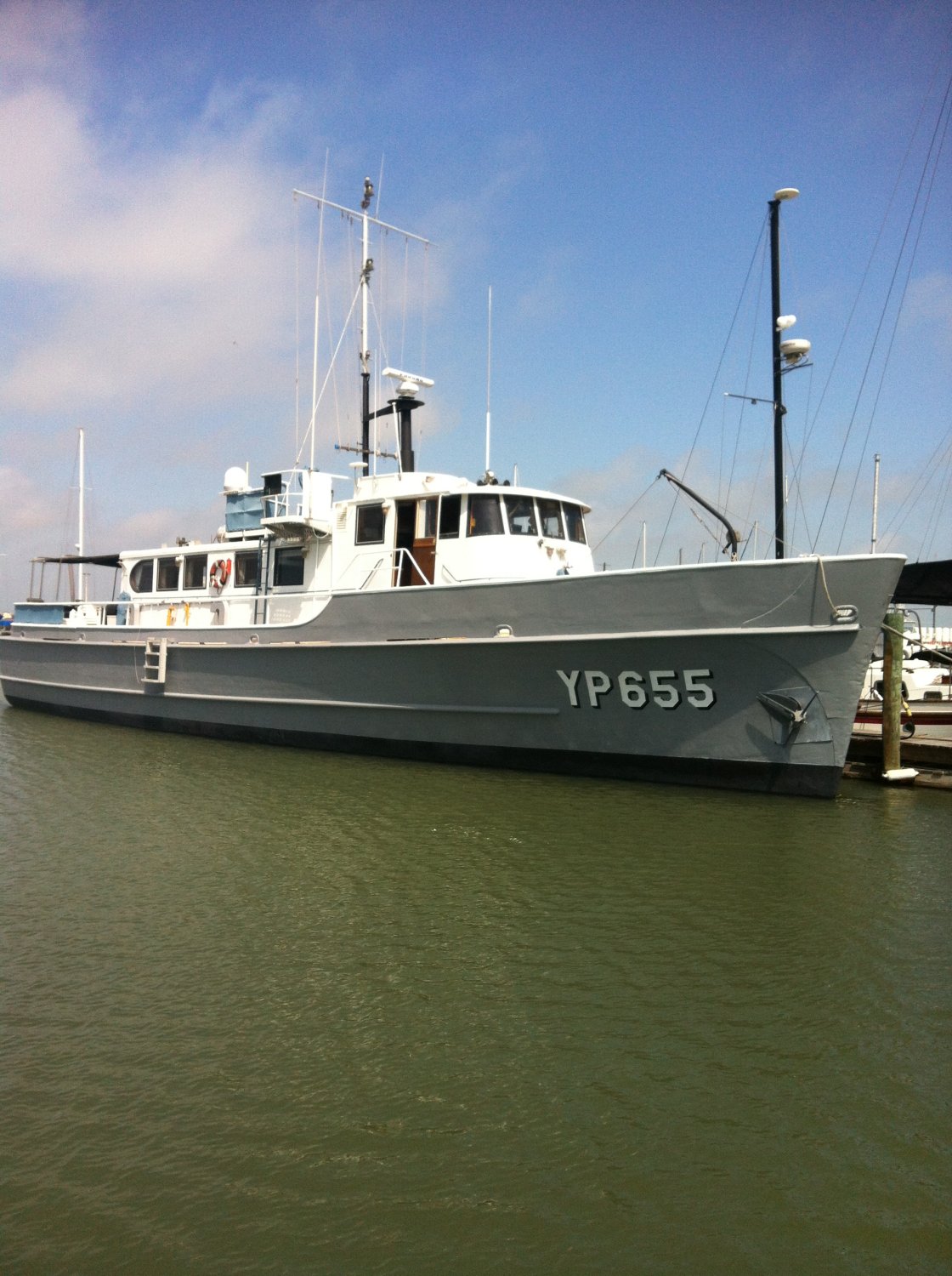 YP-655 underway in 2014 after completion of her 2013 overhaul. YP-655 is enroute to her berth at Seabook Marinia, Seabrook, TX. |