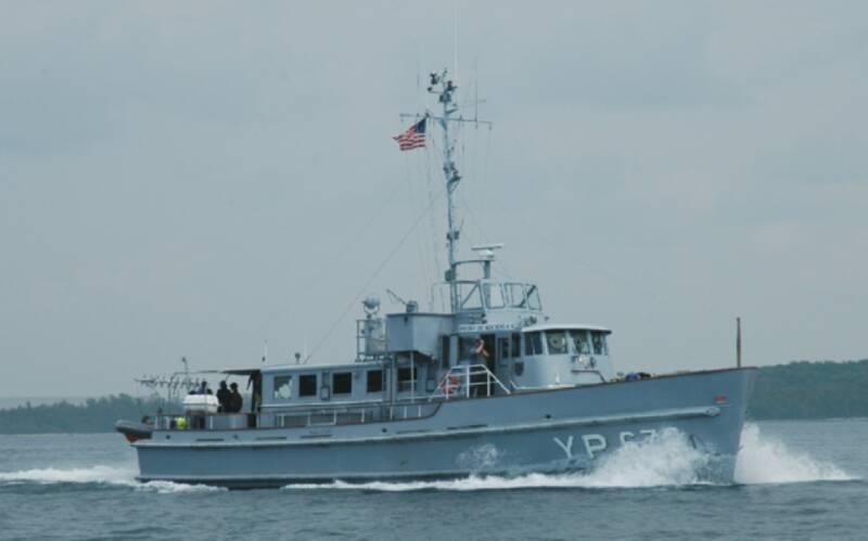 Ex-YP-673 underway on Lake Huron as the Navy Sea Cadet Great Lakes Division Research/Training Vessel Pride of Michigan. Photo courtesy of the Noble Odyssey Foundation. |