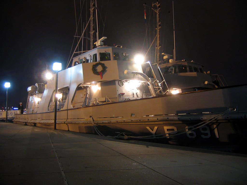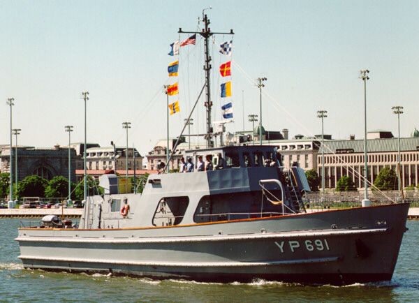 YP-691 moored pierside, date and location unknown. Photo courtesy George Bohaska. |