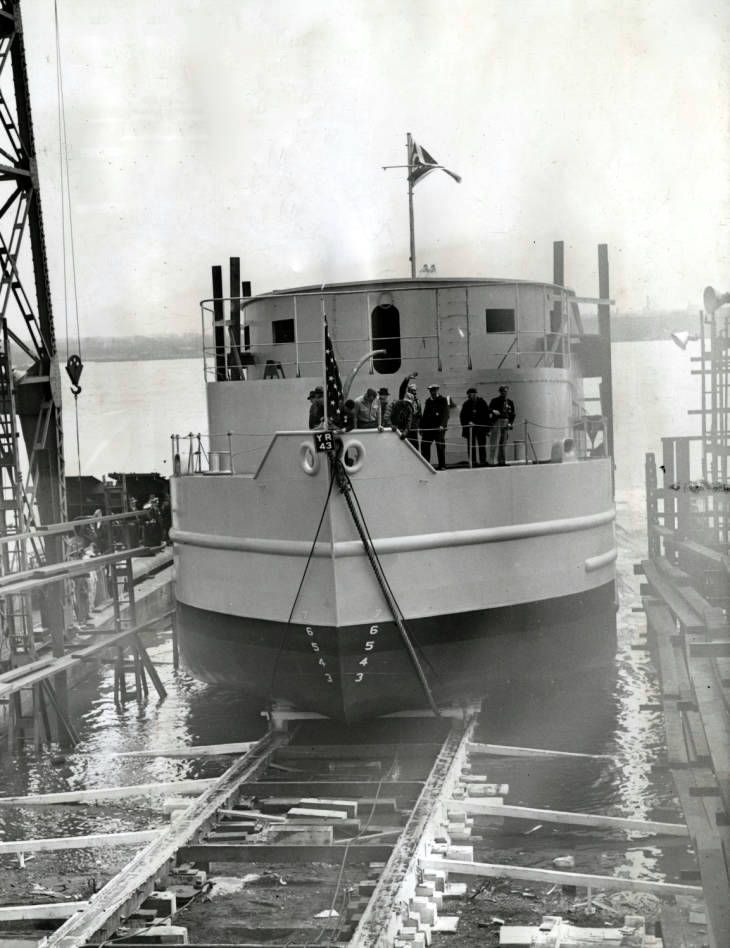 YR-43 100k Launching of the floating workshop YR-43 at Cramp's Shipyard, 18 April 1943.