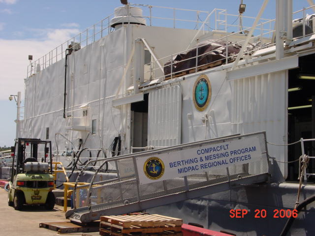 62k | YR-94 moored at Sierra Piers NAVSTA Pearl Harbor, HI. Regional Office for COMPACFLT Berthing & Messing Program MIDPAC, 20 September 2006. | Bob Gregory | |