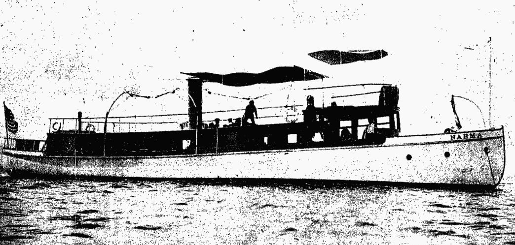 Nahma moored, date and location unknown. Photo from New Orleans Times-Picayune, 04 August 1907 |