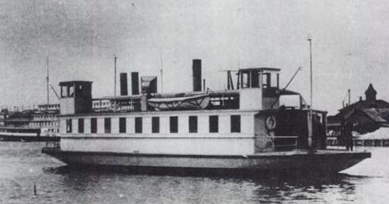 Wave underway at Newport, probably soon after completion. Note the fire monitor behind the piltohouse on the left; one of her intended duties was as the station fireboat.. Newport Historical Society photo. |