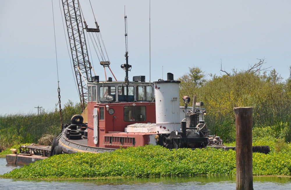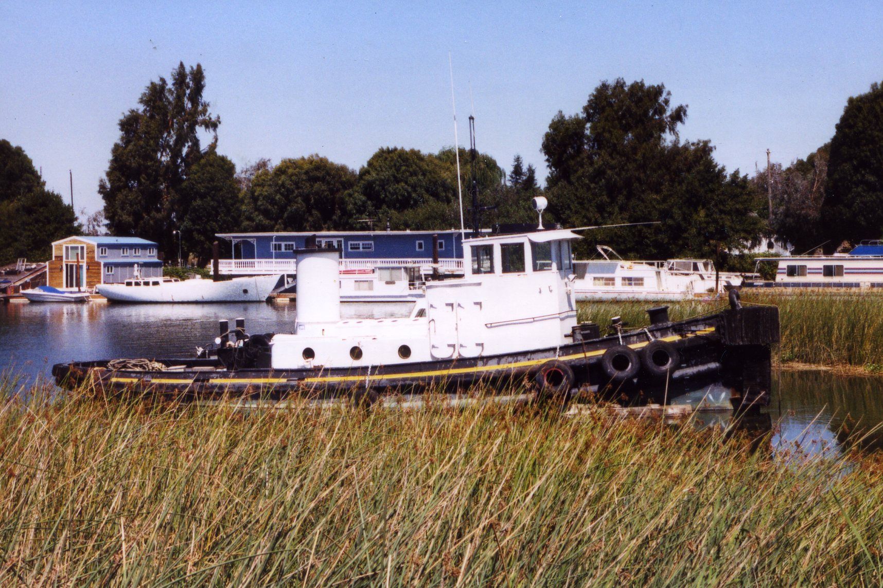 Valiant moored in the Delta Loop area of Sacramento River Delta, 24 August 2003. Photo copyright George Schneider. |