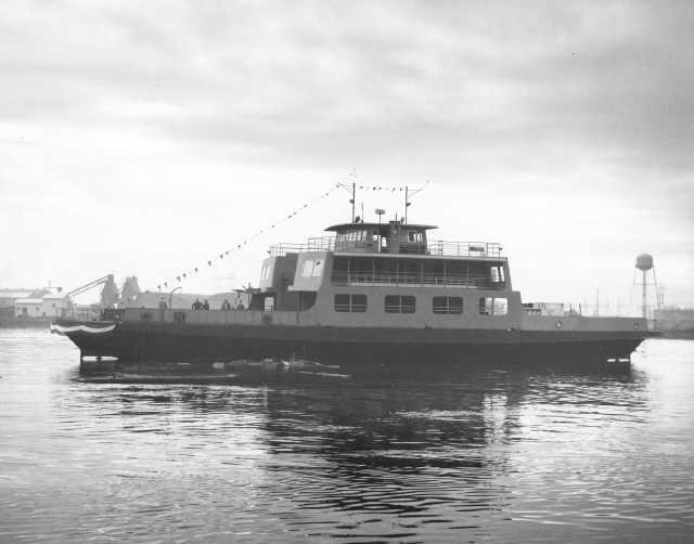 37k | Moko Holo Hele (YFB-87) after being launched at Western Boat Building, 18 December 1969. Photo from Richard's Studio Collection, Tacoma Public Library |
