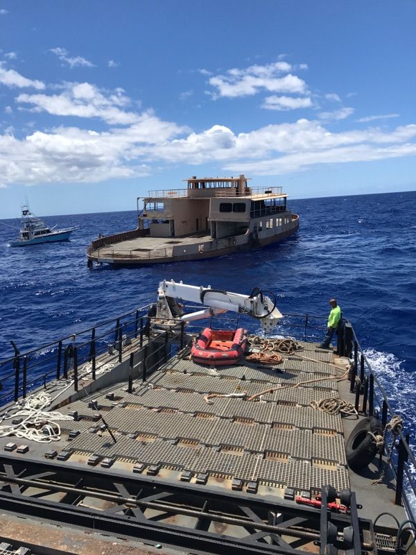 118k | The hull of ex-Moko Holo Hele (YFB-87) in place off Barber's Point, Oahu, for scuttling, 23 May 2017. | Blade Shepherd-Jones | ||
