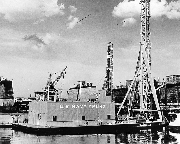 247k | YPD-43, moored, date and location unknown. US Navy photo from the collections of the US Navy Memorial. |