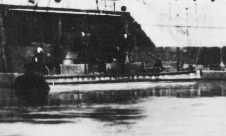 Ash Lighter No. 29 alongside Pensacola (SP-2078) at Charleston Navy Yard, 12 October 1917.