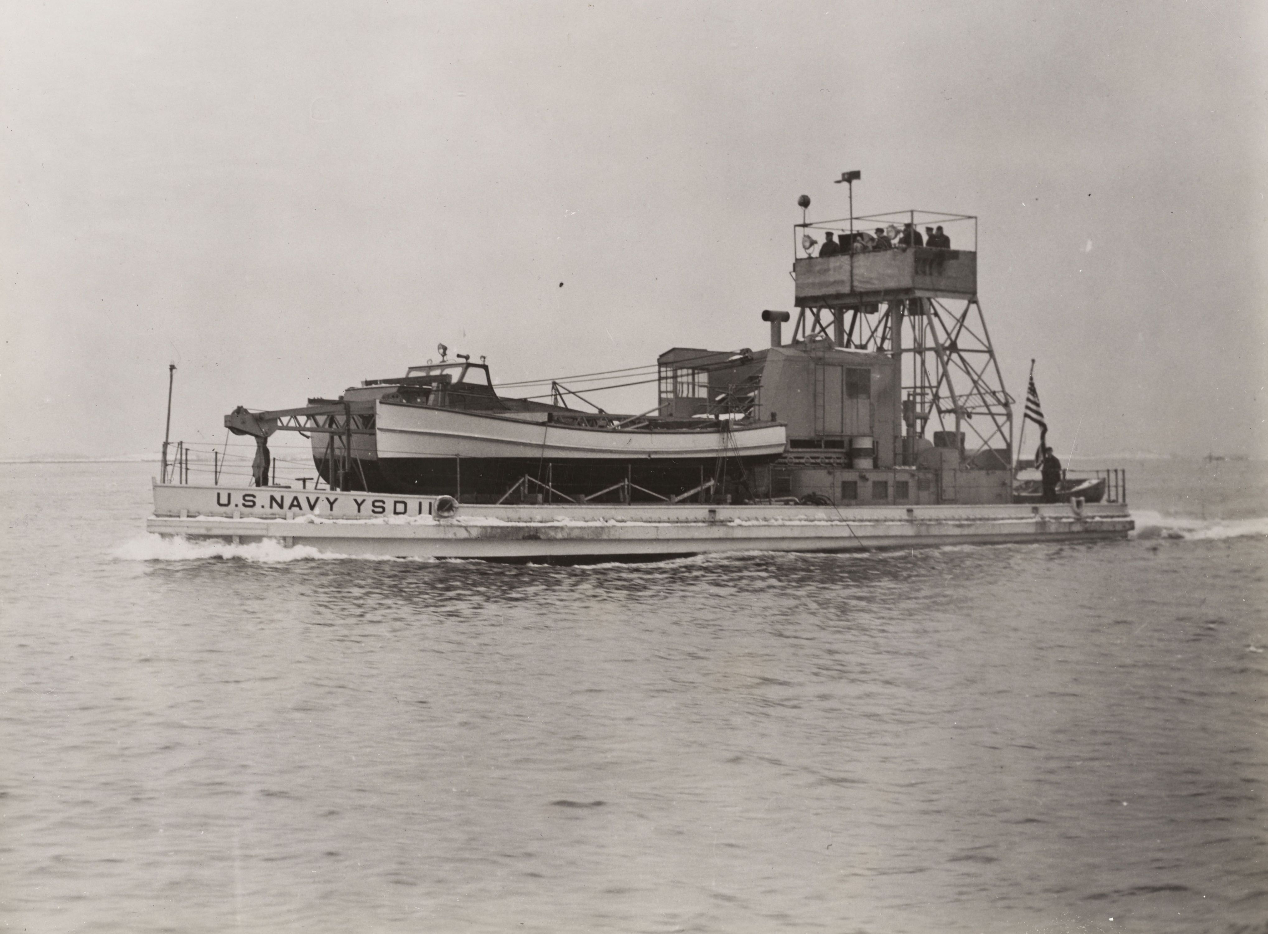 919k | YSD-11 underway, probably during builders trials. US Navy photo, now in National Archives Record Group 181, Administrative History of First Naval District in World War II, NA identifier 38329805. |