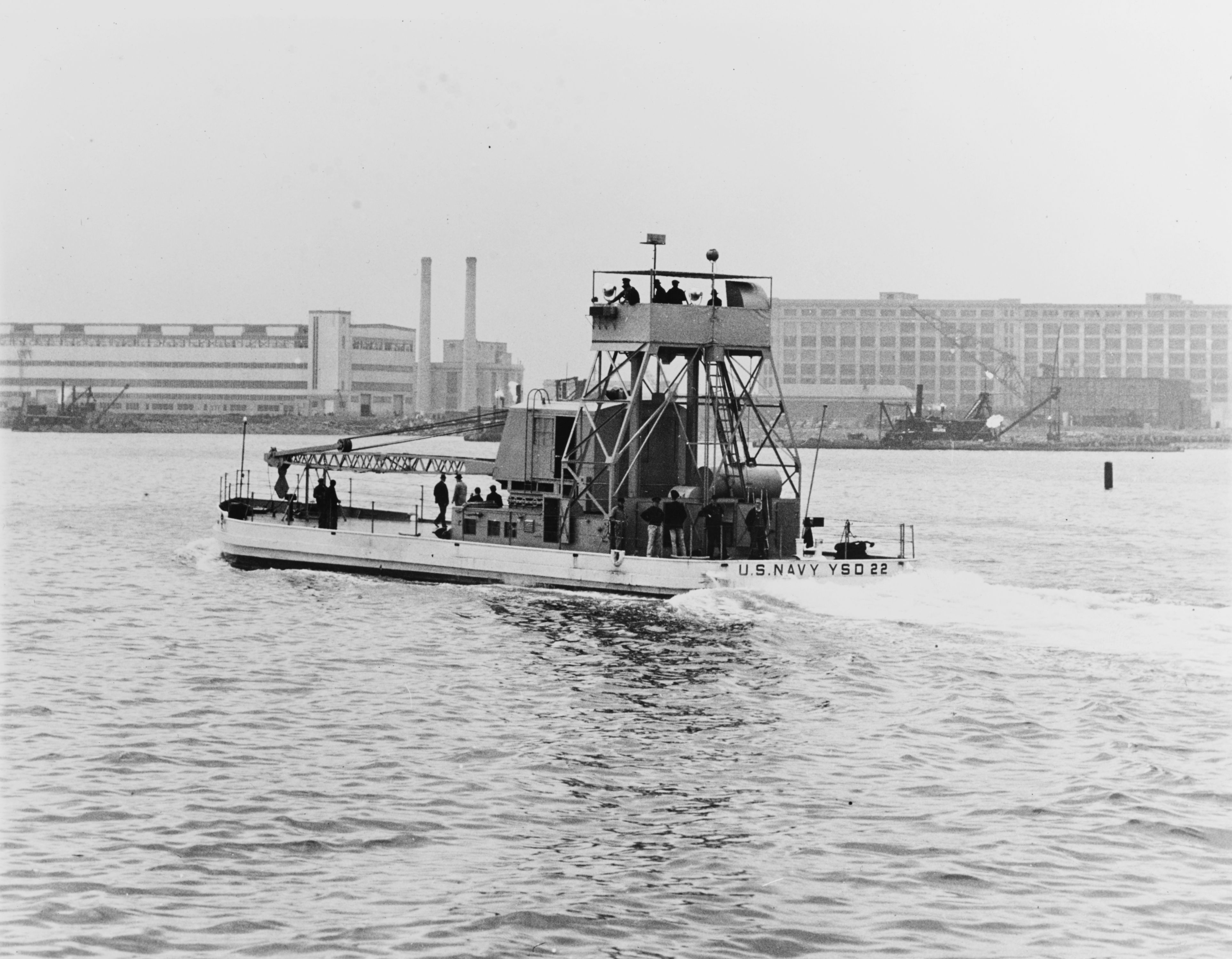 768k | YSD-22 underway on trials off Boston Navy Yard, 28 April 1941. National Archives photos 19-N-23856, 19-N-23857 and 19-N-23855 |