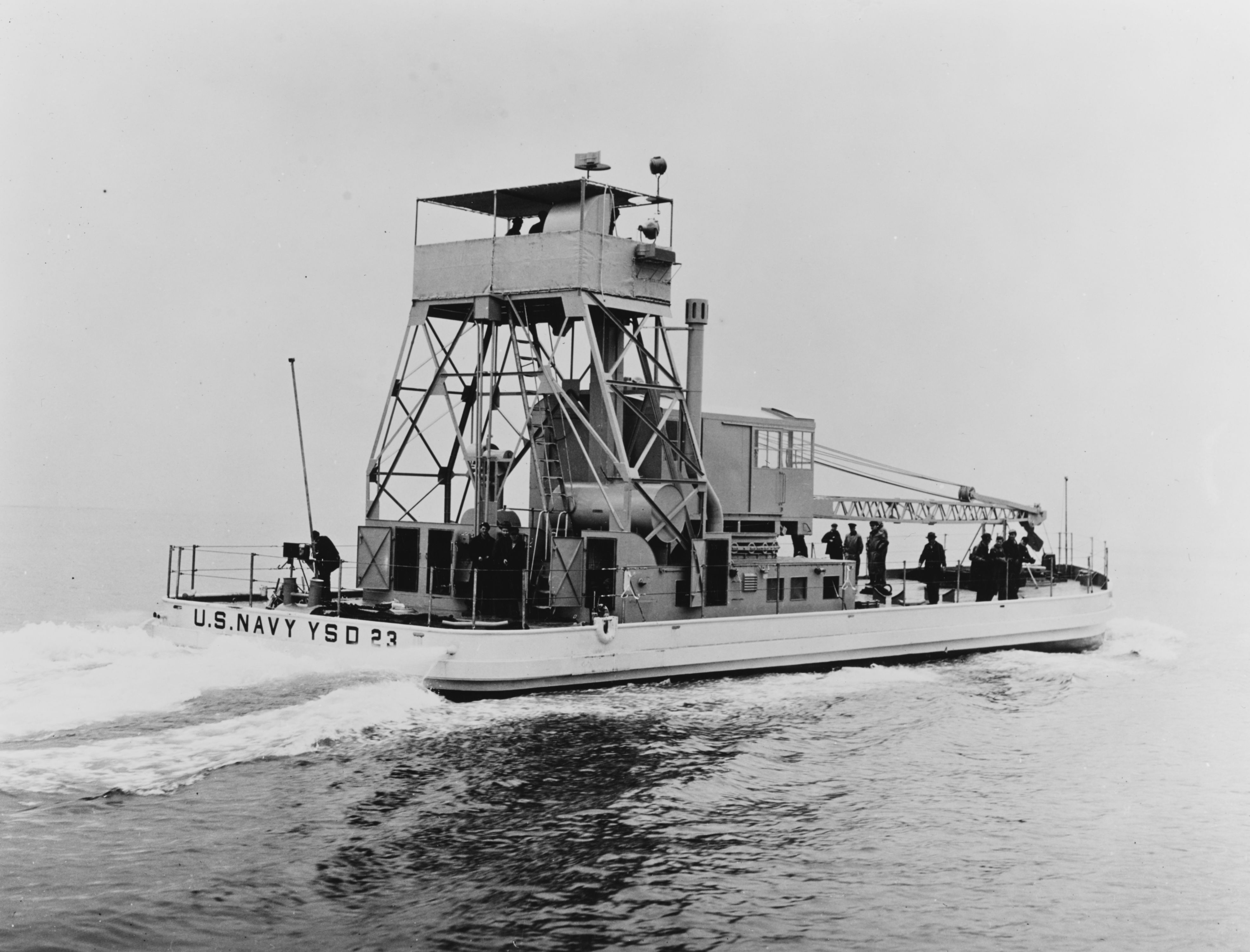 870k | YSD-23 underway on trials off Boston Navy Yard, 05 May 1941. National Archives photos 19-N-24220, 19-N-24221 and 19-N-24219 |