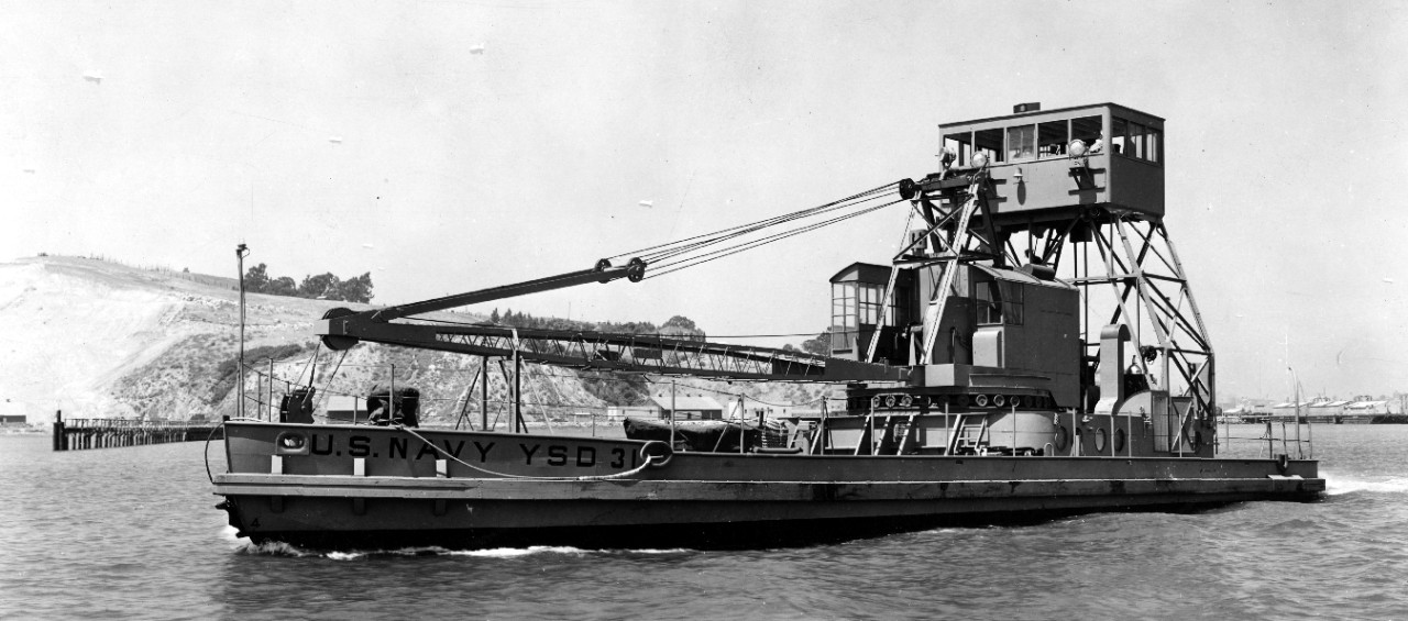 175k | YSD-31 underway near Mare Island, shortly after completion, 05 August 1942. Bureau of Ships photo BS-33074 from NHHC files |