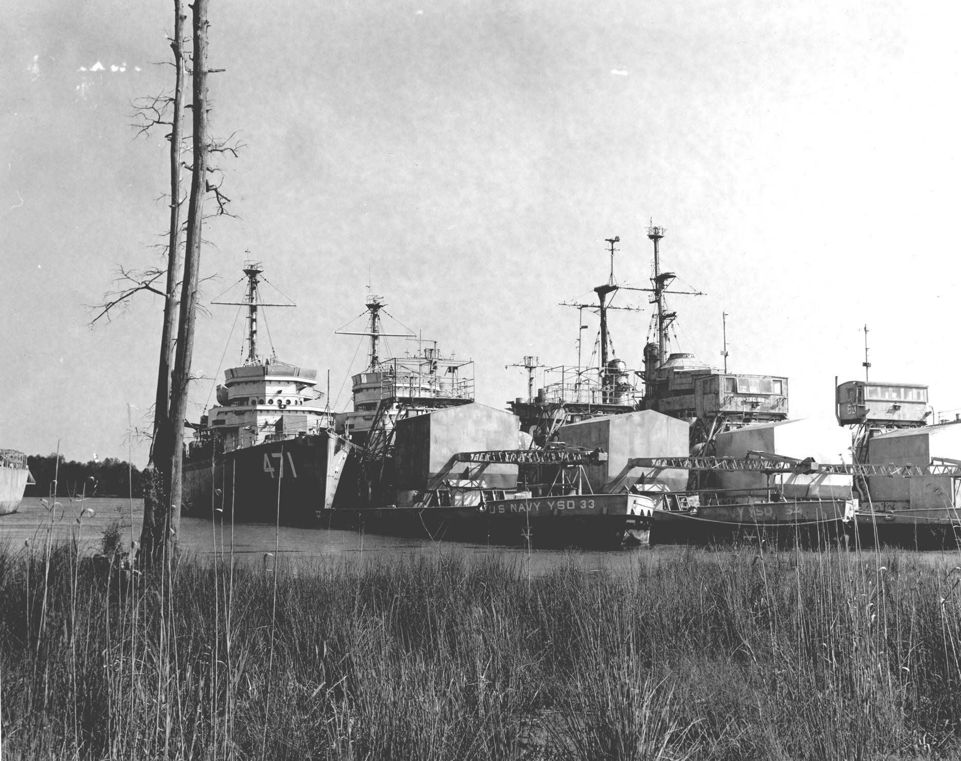 23k | YSD-33 in the reserve fleet at Orange, TX, 04 May 1973. Skill (MSO-471) is in the background. Photo from government sale bid catalog. |