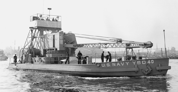 61k | YSD-40 underway off Norfolk Navy Yard, circa 1943. US Navy photo. | John B Neville, CPO USN Ret. | |