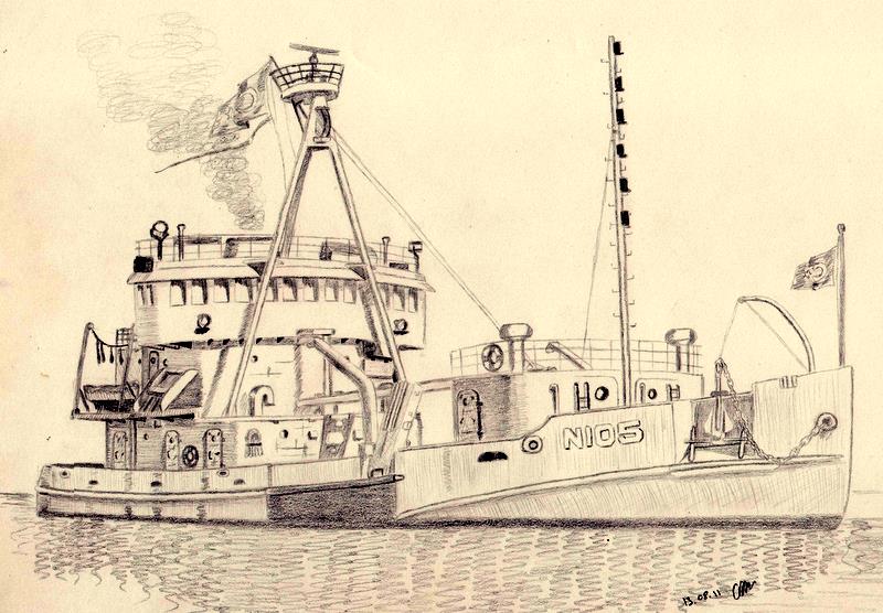 Drawing of TCG Mehmetçik (N 105) (N 115) by Cüneyt Demir. |