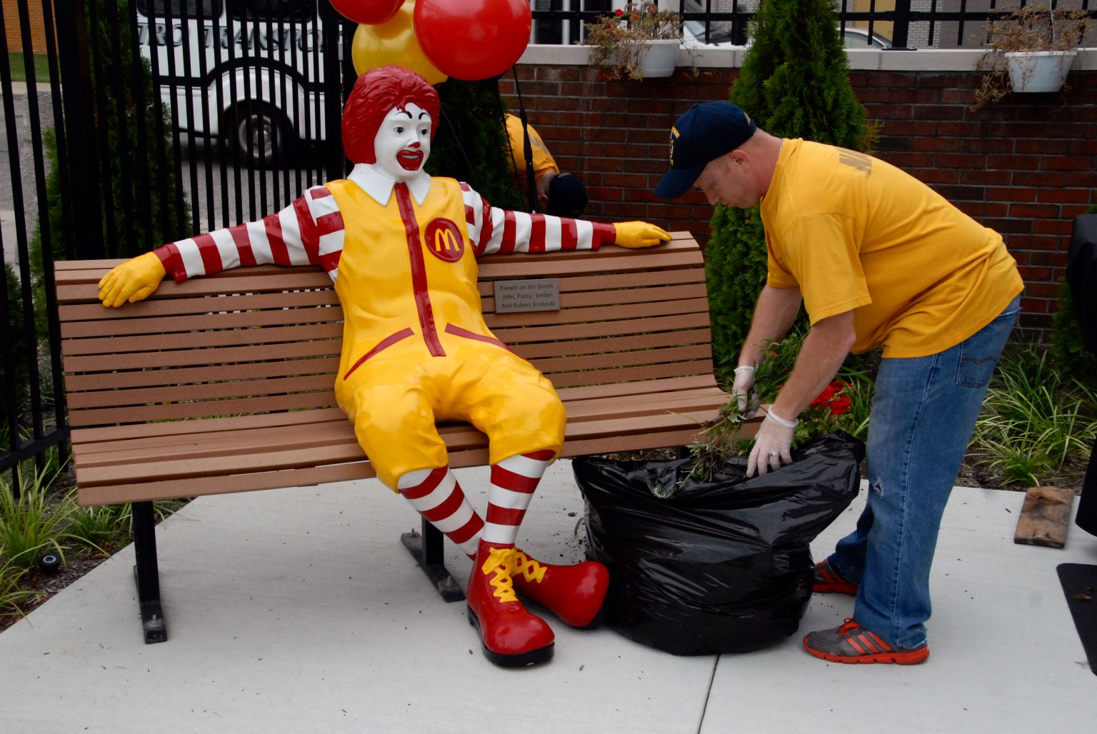 Pre-Commissioning Unit Detroit (LCS 7), provides landscape maintenance during a community service project at the Ronald McDonald House as part of Navy Week Detroit.