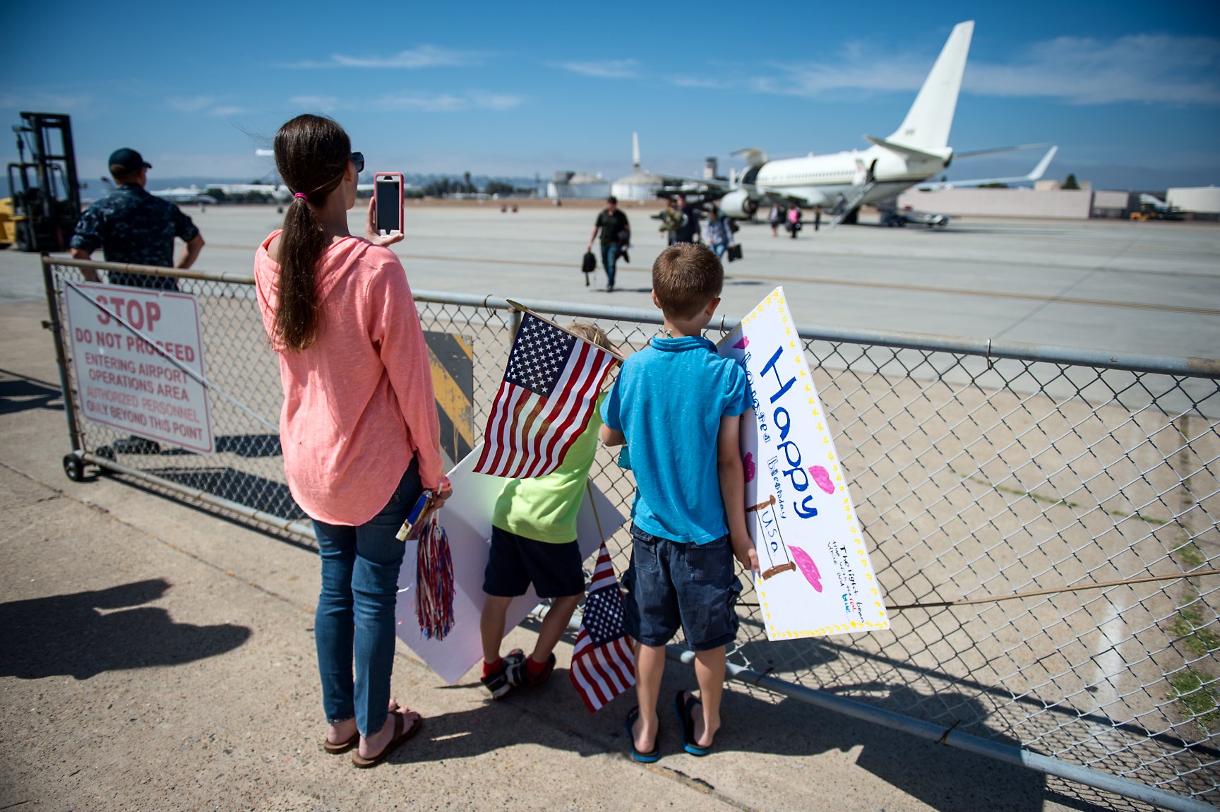 361k | 18 March 2017: North Island, Calif. - Families of sailors assigned to the littoral combat ship Crew 103 welcome their returning sailors during a homecoming celebration at Naval