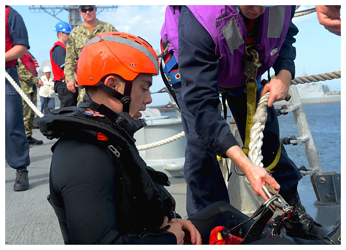 an example of a flexible sailor as the crew's galley leading chief petty officer, helicopter control officer, a search and rescue swimmer and the ships only qualified barber. (U.S. Navy photo #170123-N-TP832-037 by MC3 Michael Lopez from the Navy News Stand) | ||