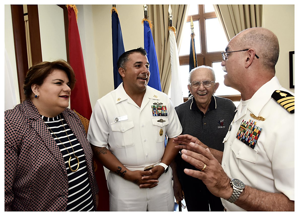 230k | 08 April 2019: San Juan, Puerto Rico - From left to right, U.S. Rep. Jenniffer Gonzalez-Colon, Command Master Chief Jose Ramiro-Guzman, USS Detroit (LCS 7),