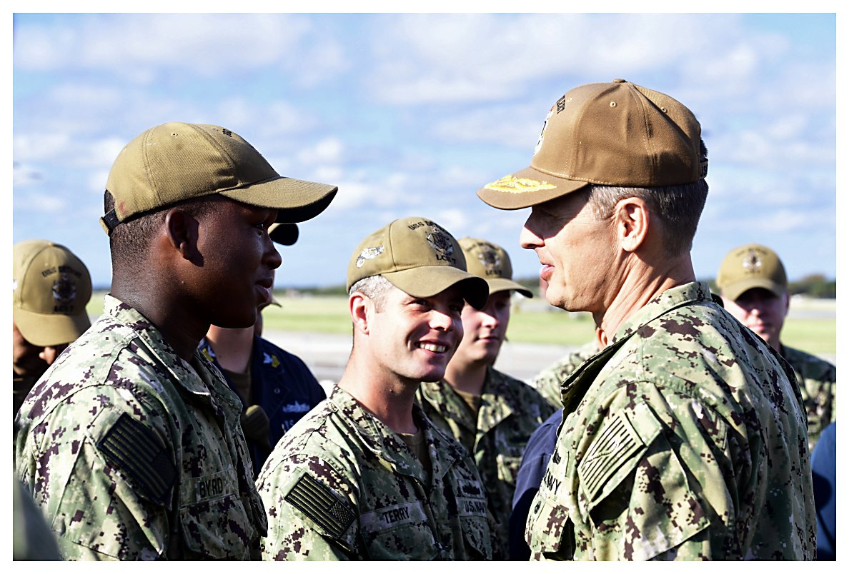 206k | 21 October 2019: Mayport, Fla. - Rear Adm. Donald Gabrielson, Commander U.S. Naval Forces Southern Command/ U.S. 4th Fleet congratulates Damage Controlman Fireman Apprentice