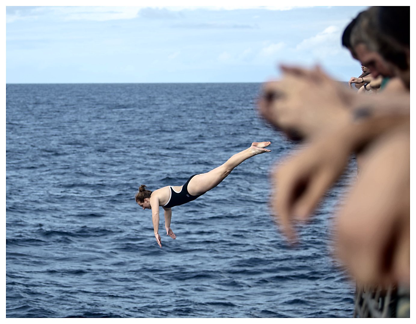 187k | 28 November 2019: The Atlantic Ocean - Lt.(jg) Amelia Lewaniak participates in a swim call held on Detroit. During this deployment to the U.S. Southern Command’s