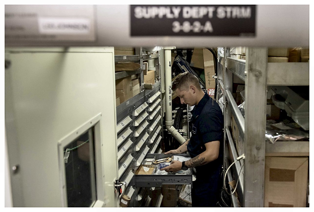 191k | 23 March 2020: The Caribbean Sea - Logistics Specialist 3rd Class Joseph Zentmyer organizes supplies in a storeroom aboard Detroit. (U.S. Navy photo VIRIN #200323-N-KK394-1017 by MC2 Anderson W. Branch from the Defense Visual Information Distribution Service) | ||