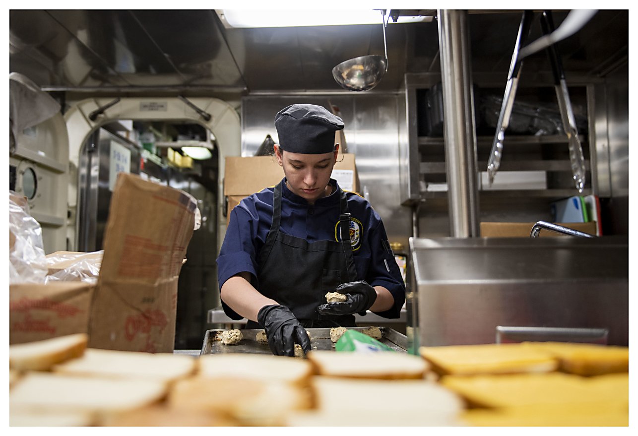 145k | 09 September 2020: The Caribbean Sea - Culinary Specialist Seaman Lena Strough prepares food in the galley aboard Detroit. (U.S. Navy photo VIRIN #200909-N-QI061-0008 by MC2 Nathan T. Beard from the Defense Visual Information Distribution Service) | ||