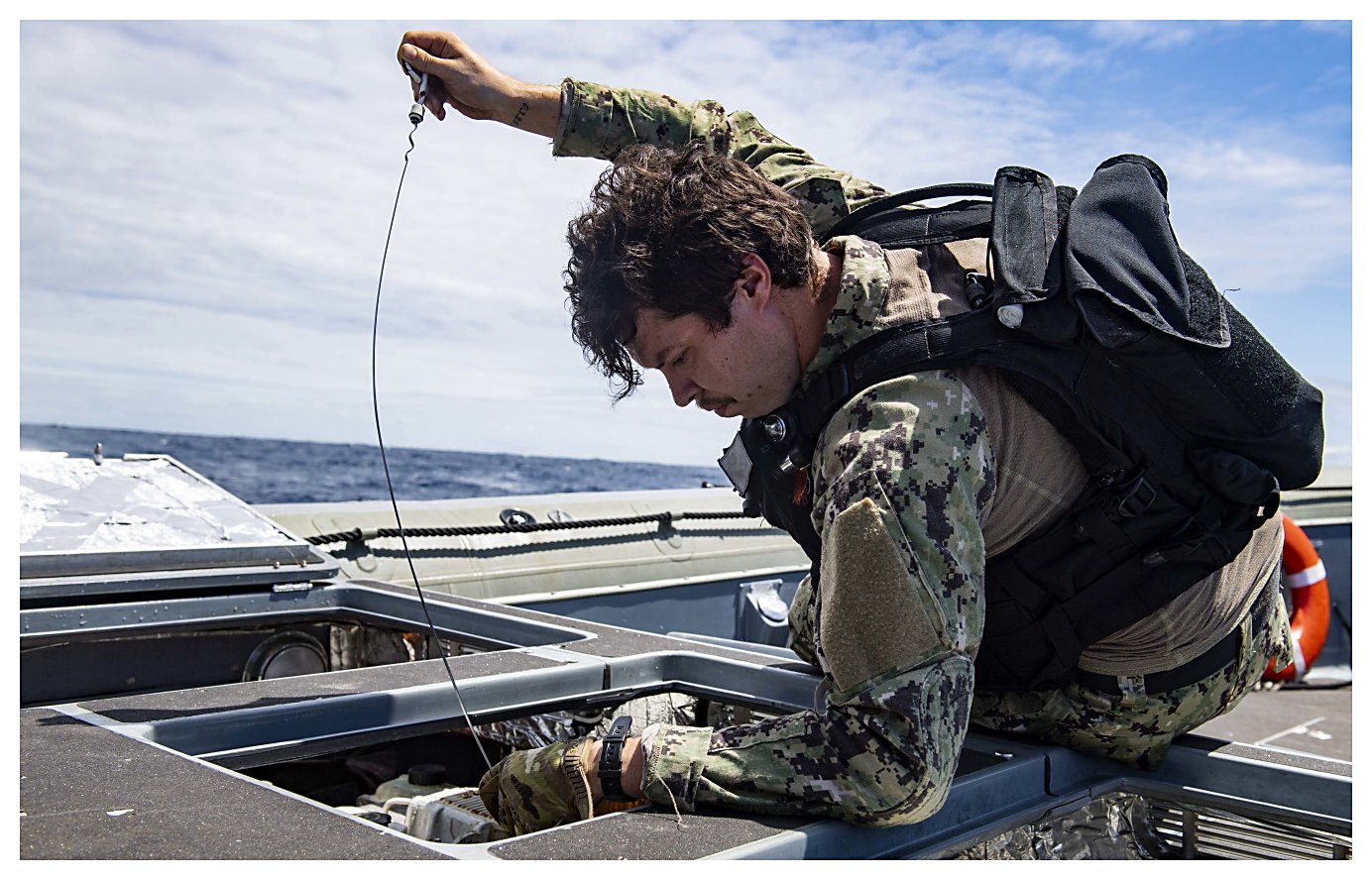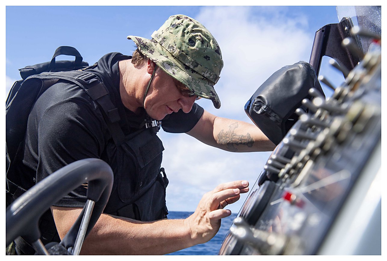 195k | 19 September 2020: The Pacific Ocean - Boatswain’s Mate 1st Class Kevin Parker checks diagnostics aboard a rigid-hull inflatable boat inflatable boat assigned Detroit